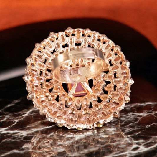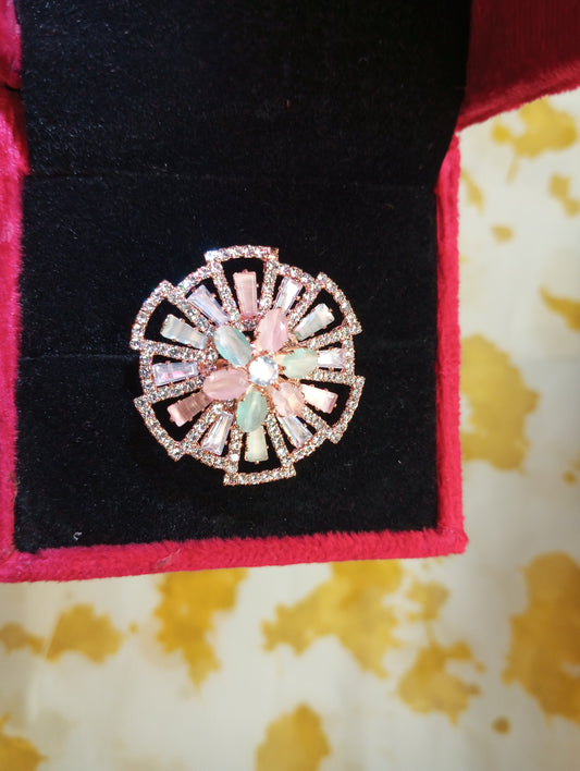 Adjustable American Diamond Unique Cocktail Ring- Pink and Mint Green Pastel Colors