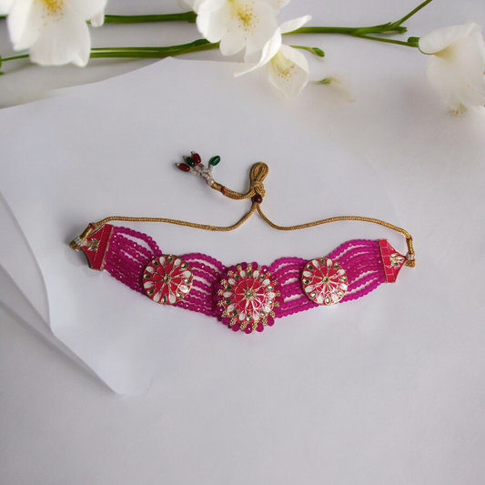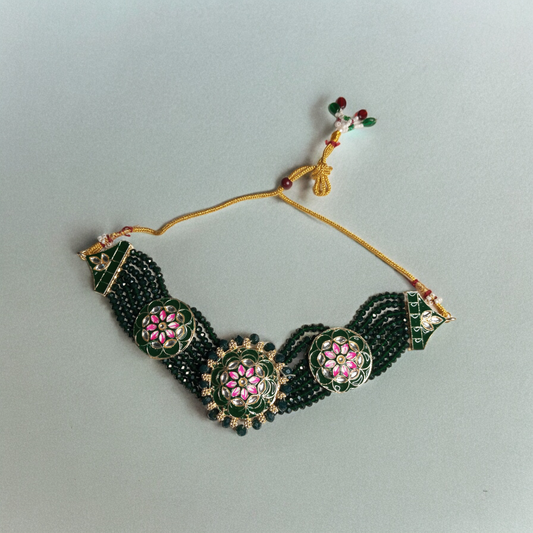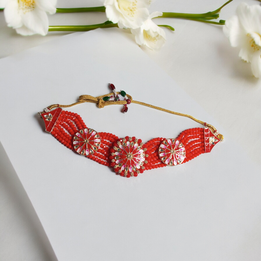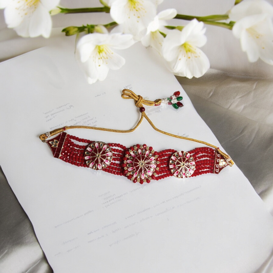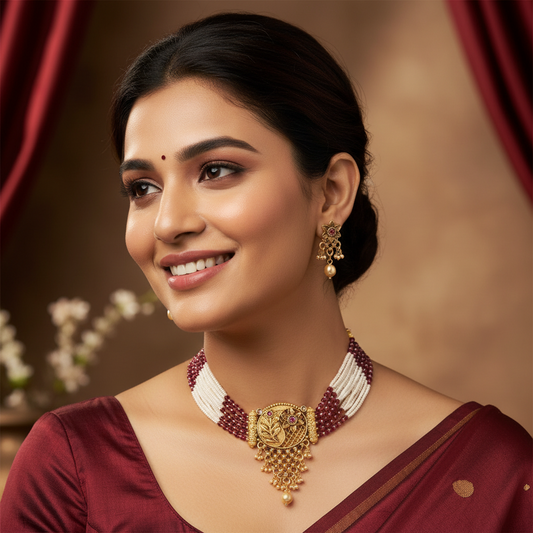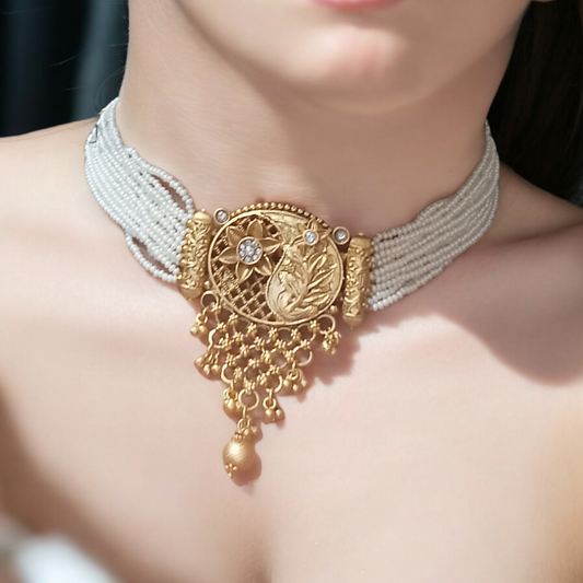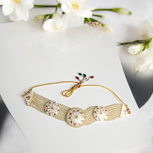 Aavya Off White Choker Necklace with Earrings and MaangTika