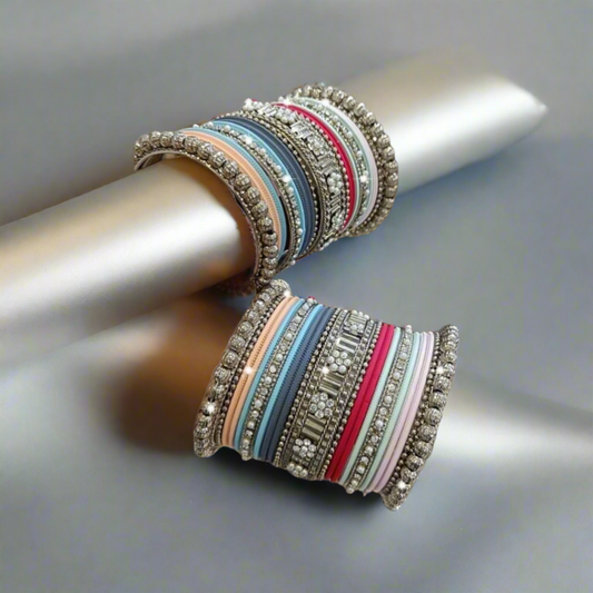 Multicolor Silver Bangles Set