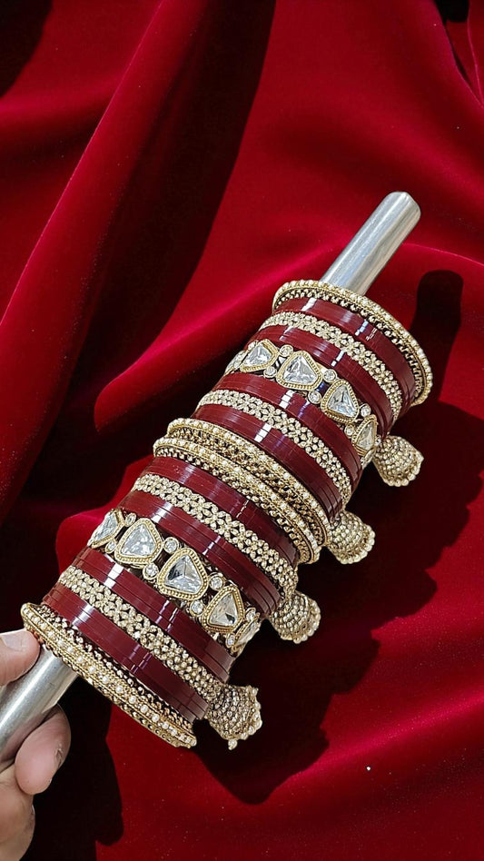 Bridal Kundan Maroon Gold Bangles Set