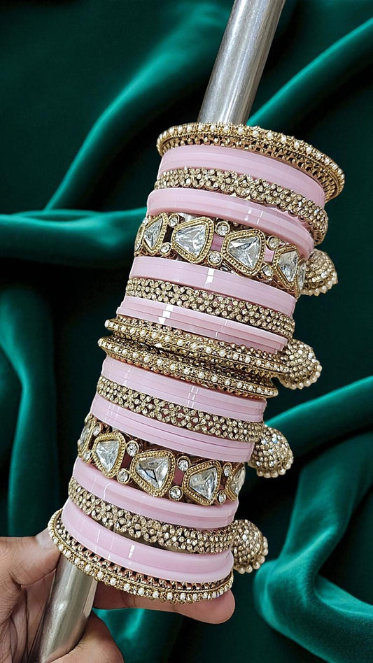 Bridal Kundan Baby Pink Bangles Set