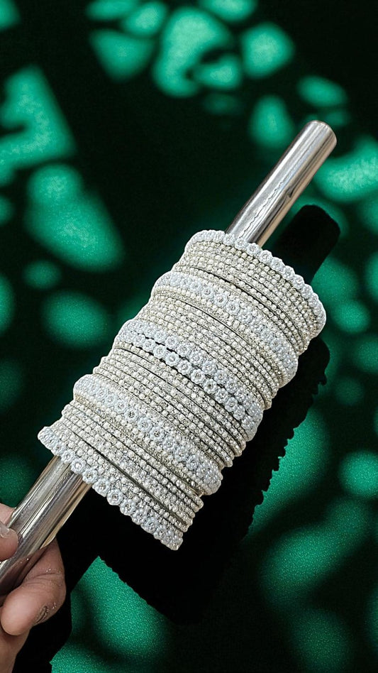 Moti Ring Silver Bangle Set