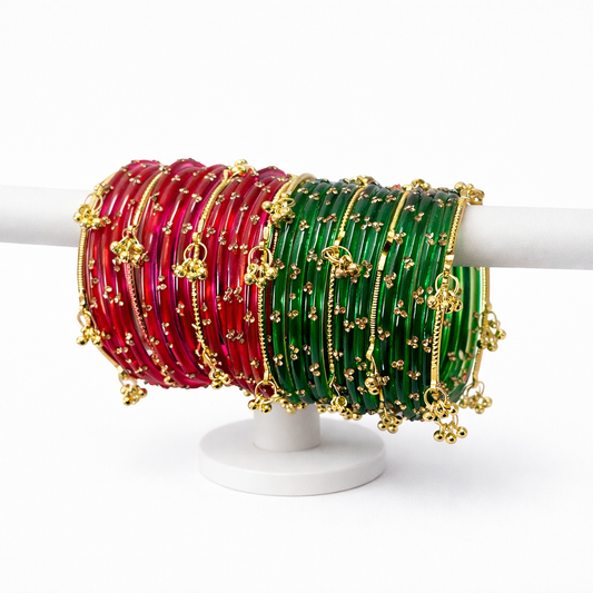 Viral Kashmiri Ghungroo Glass Bangle Set-Red and Green