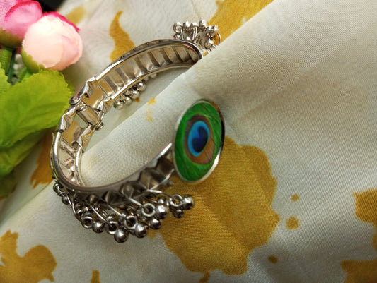 Kids Adjustable Peacock Bracelet- Silver Color