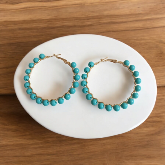 Blue Pearl Kini Hoop Earrings