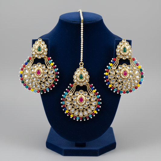 Aavya Off White Choker Necklace with Earrings and MaangTika