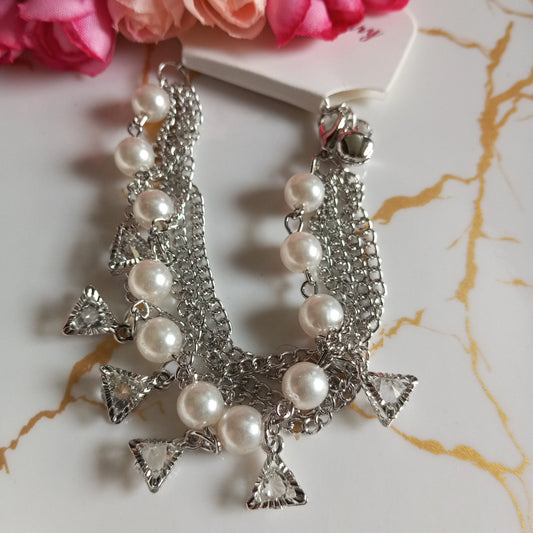 Silver Multilayer Adjustable Bracelet- Pearls
