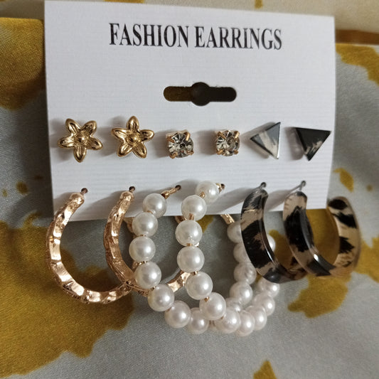 Combo of 6 Earrings- Cz, Golden and Pearl