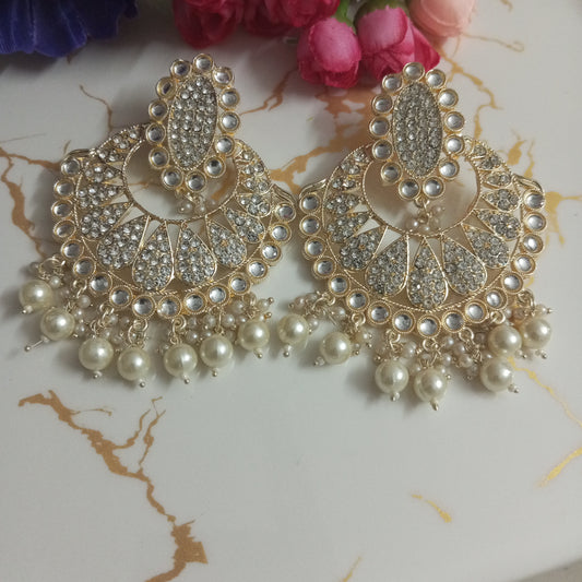 Ethnic Golden Chaandbali Earrings with Hanging Pearls