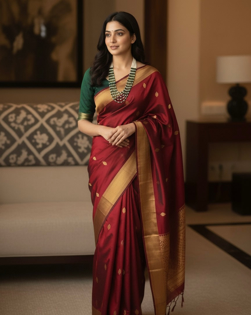 Featuring multiple strands of green and ivory beads, delicately handcrafted to perfection, this necklace beautifully complements ethnic and festive outfits. The rich emerald tone paired with subtle ivory accents makes it perfect for weddings, festive celebrations, and special occasions.