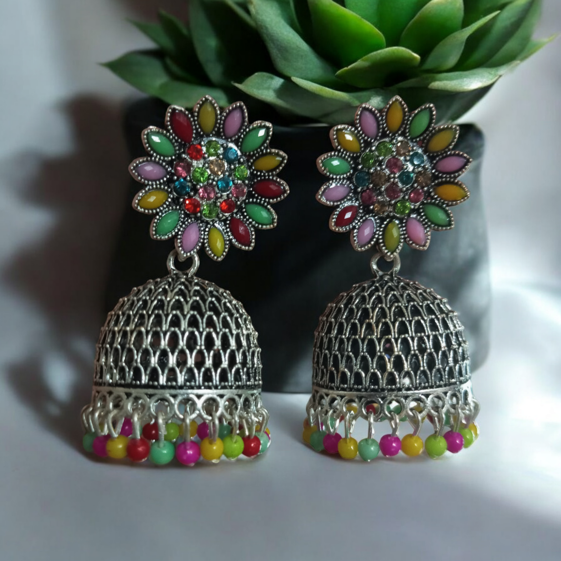 Expertly crafted with stunning detail, these evergreen Jhumka Earrings add a touch of traditional charm to any outfit. The ethnic jhumka design brings a touch of cultural elegance, while the high-quality craftsmanship ensures long-lasting wear. Elevate your style with these beautifully crafted earrings.