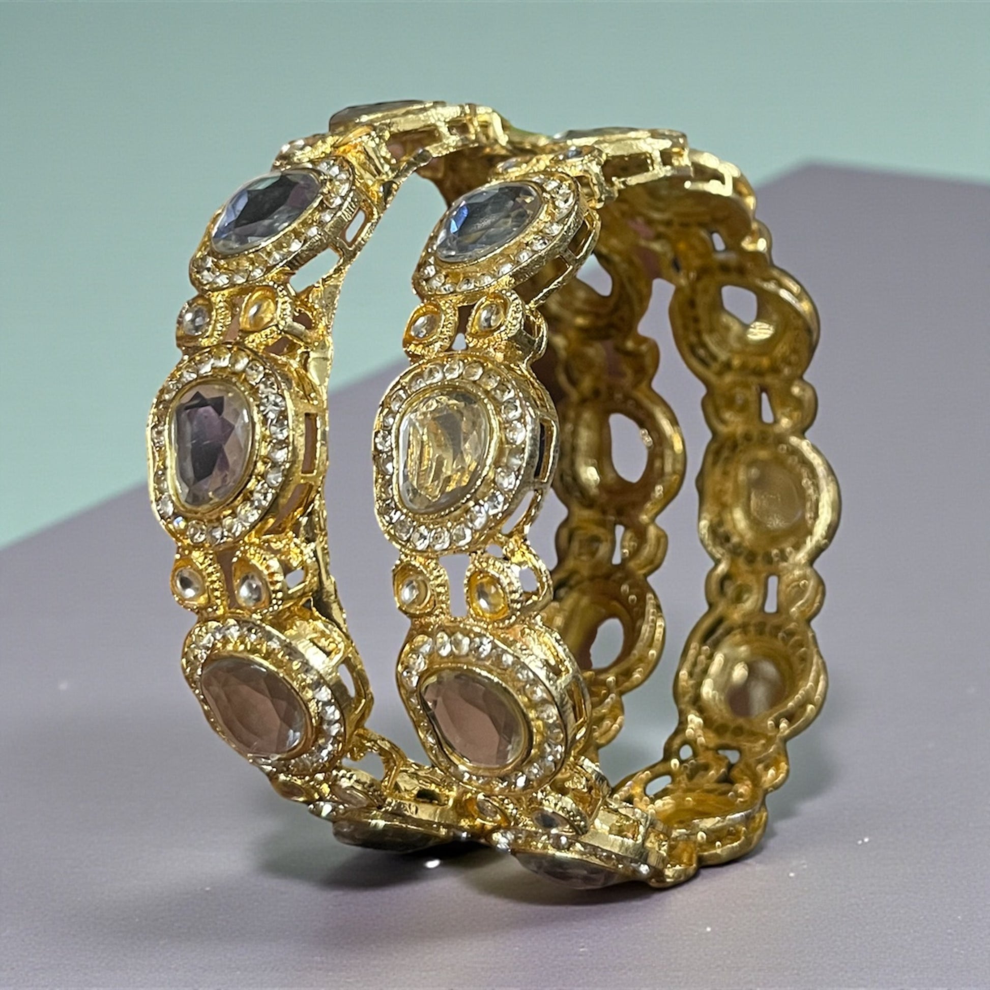 Upgrade your jewelry collection with our Gold Plated Bangle Set. This set includes 2 must-have bangles, each expertly plated with gold for a luxurious touch. Elevate any outfit with these elegant and versatile pieces.