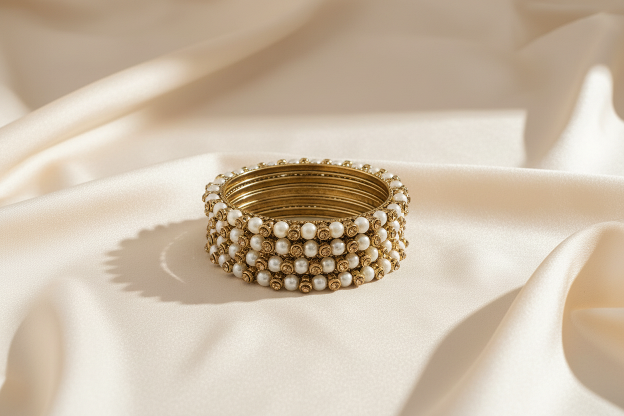 Upgrade your jewelry collection with our Gold Plated Pearl Bangle Set. This set includes 4 must-have bangles, each expertly plated with gold for a luxurious touch. Elevate any outfit with these elegant and versatile pieces.