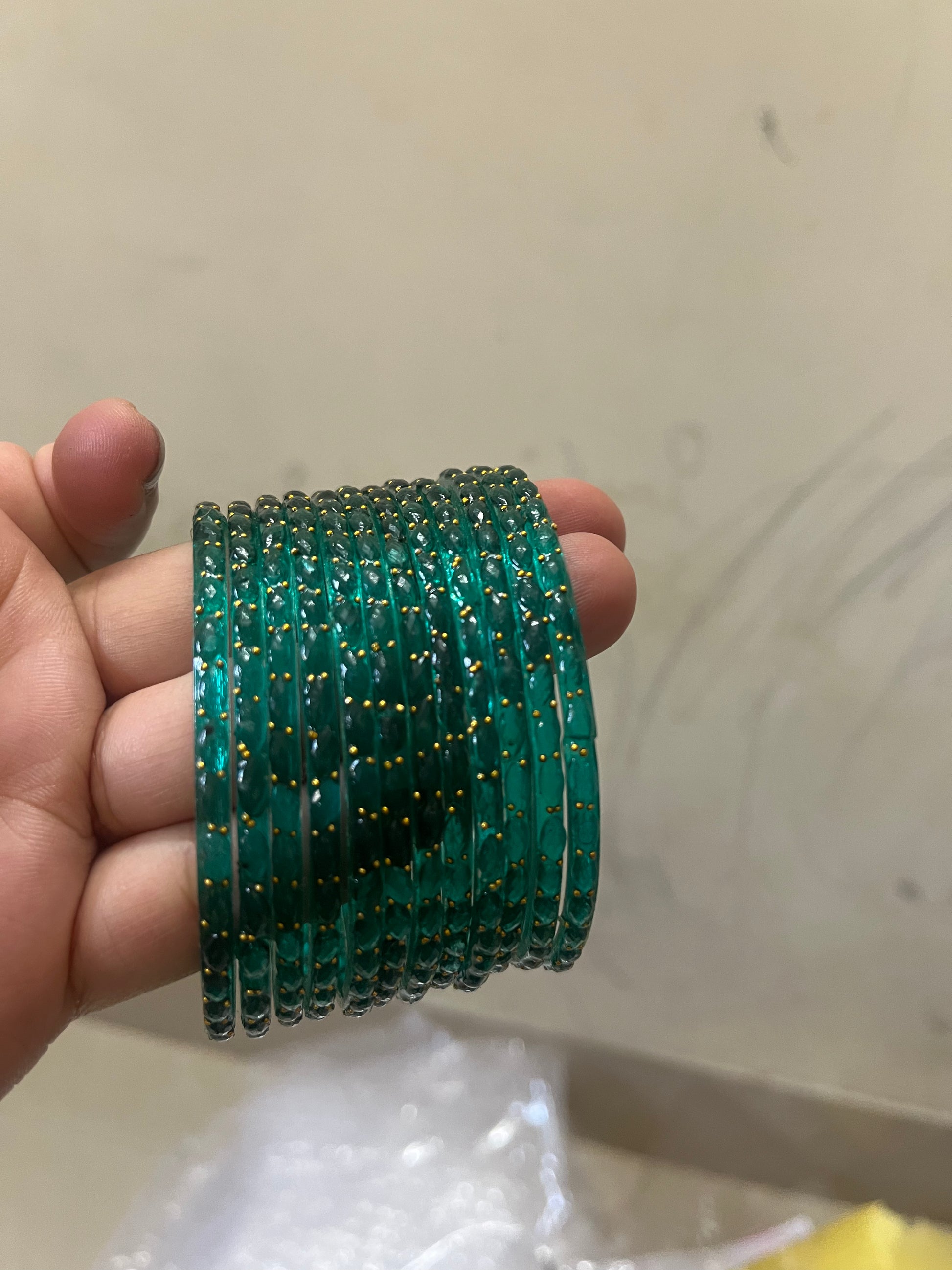 The Viral Raindrop Bangles set includes 24 bangles, with 12 in blue and 12 in green. This combination offers versatility for various color palettes and occasions. Crafted for durability, these bangles provide an elegant layering option for both casual and formal attire.